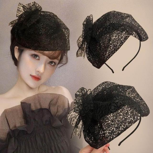 Felicity髮箍髮飾法式復古蕾絲蝴蝶結髮卡半帽髮箍輕奢名媛晚宴髮飾女