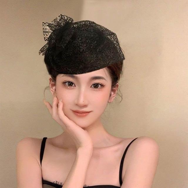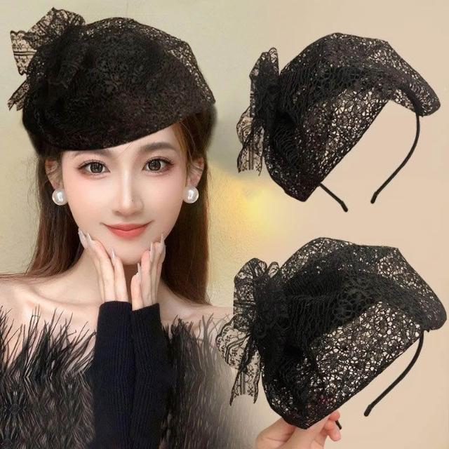Felicity髮箍髮飾法式復古蕾絲蝴蝶結髮卡半帽髮箍輕奢名媛晚宴髮飾女