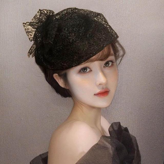 Felicity髮箍髮飾法式復古蕾絲蝴蝶結髮卡半帽髮箍輕奢名媛晚宴髮飾女