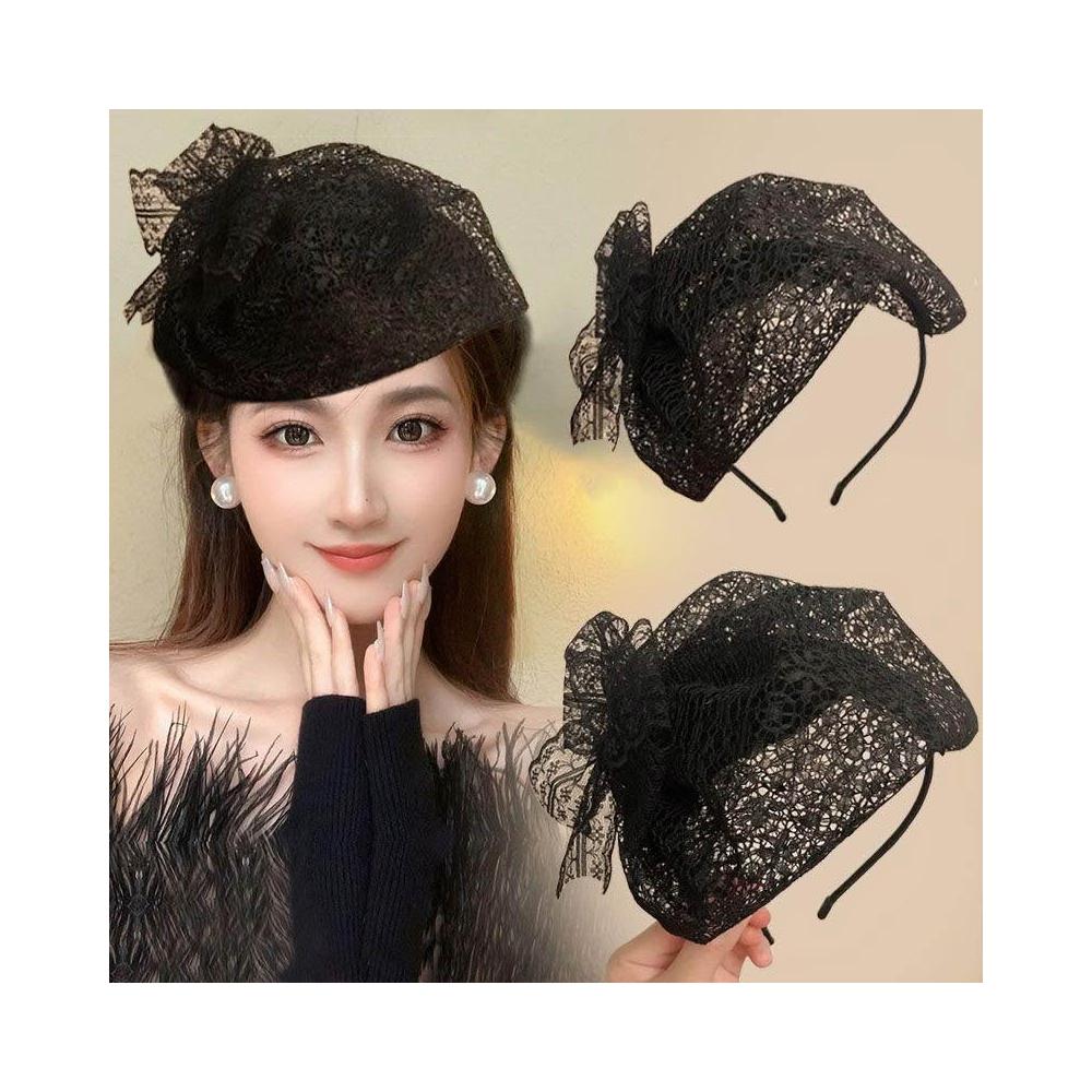 Felicity髮箍髮飾法式復古蕾絲蝴蝶結髮卡半帽髮箍輕奢名媛晚宴髮飾女