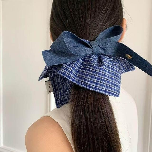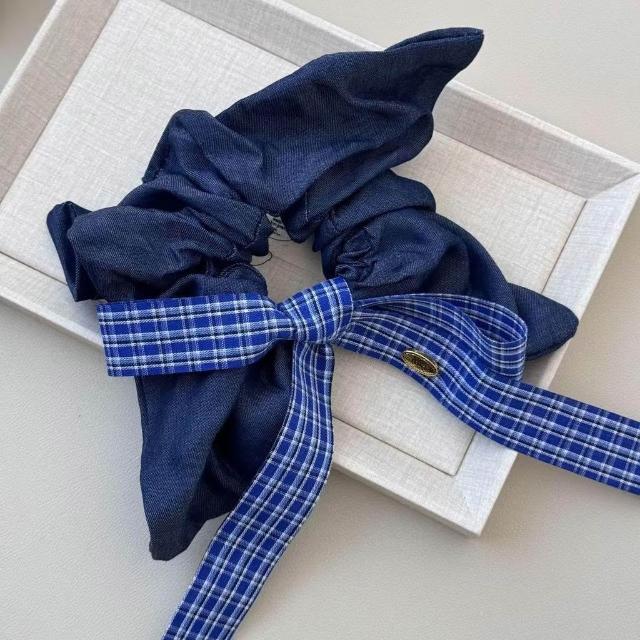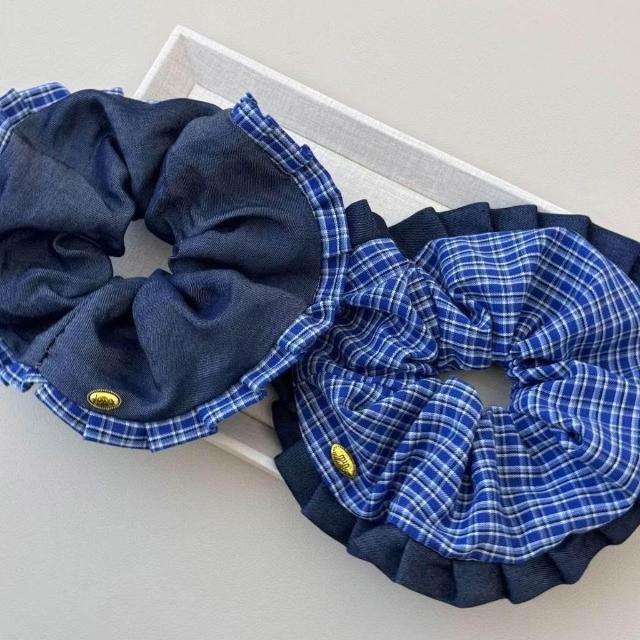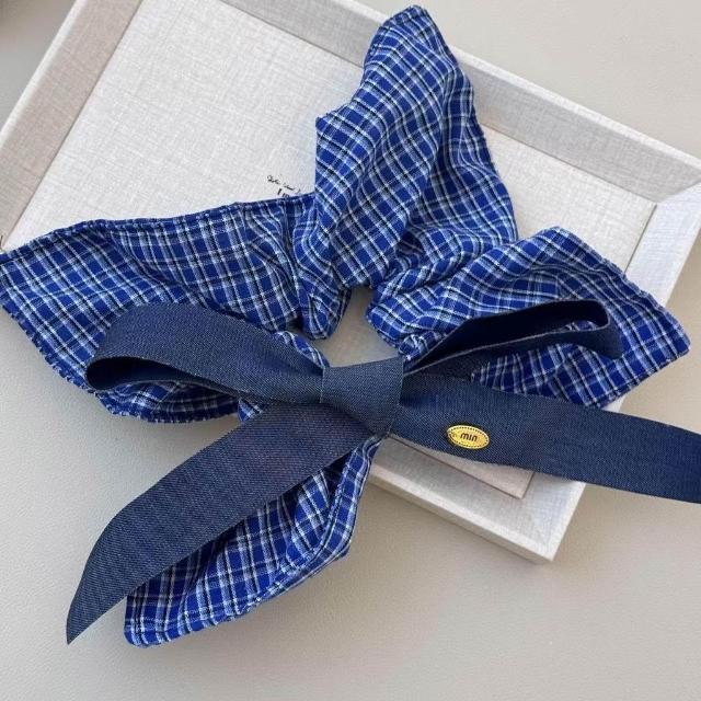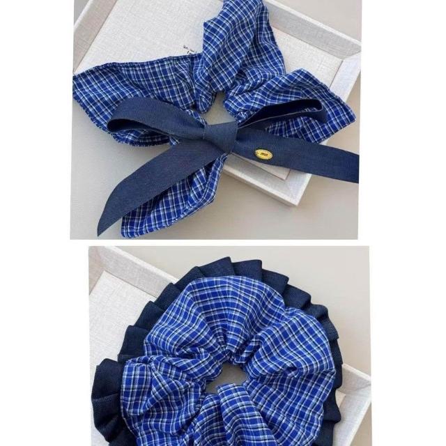 Felicity多條裝髮圈髮飾藍色復古牛仔韓系蝴蝶結格子方巾大腸圈頭繩方形髮飾金標髮繩