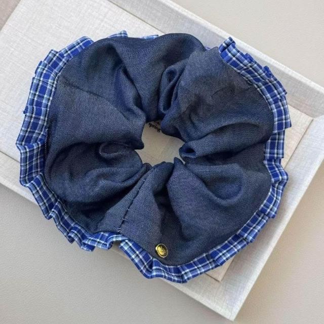 Felicity多條裝髮圈髮飾藍色復古牛仔韓系蝴蝶結格子方巾大腸圈頭繩方形髮飾金標髮繩
