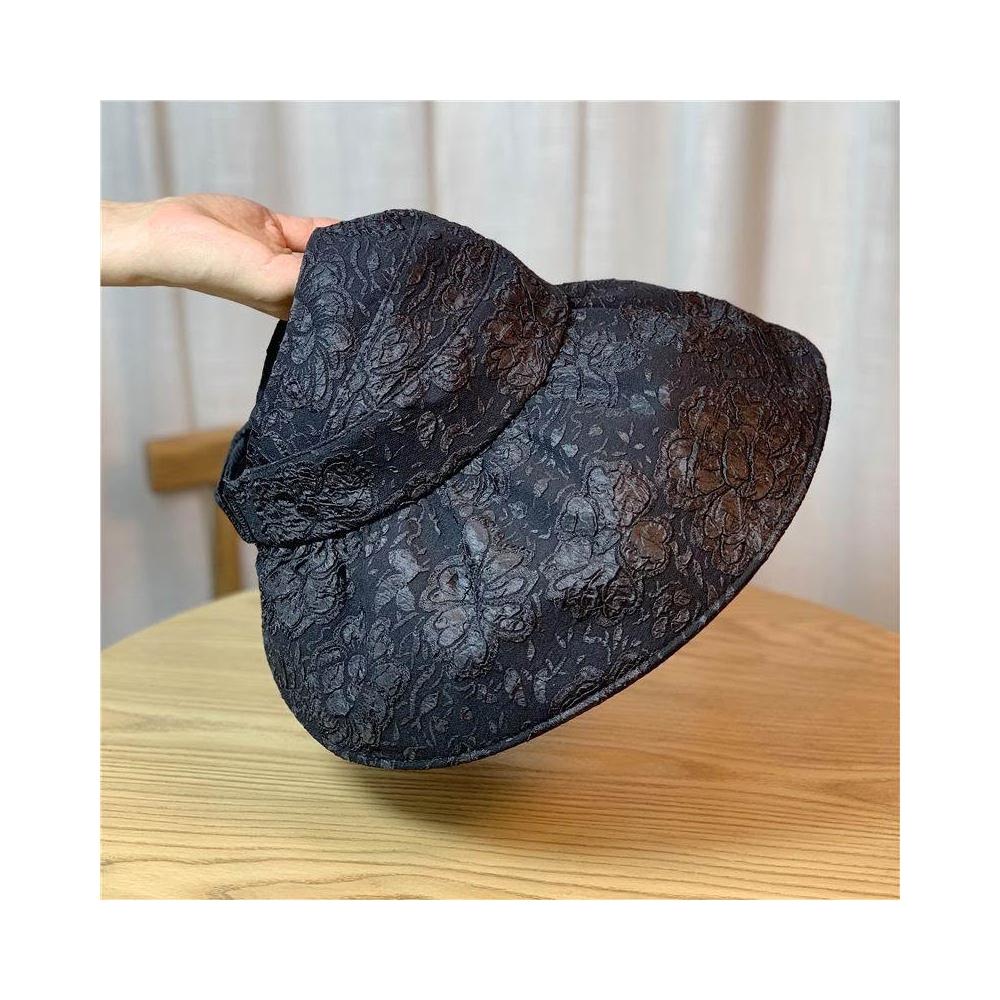Felicity遮陽帽新款黑膠空頂防曬帽子女夏天薄款防紫外線大檐太陽帽漁夫帽