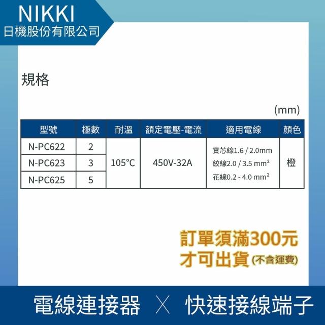 日機撥桿式連接器 免壓接 接線端子 2孔 3孔 5孔 50入組 電線連接器 快速接頭 N-PC62系列