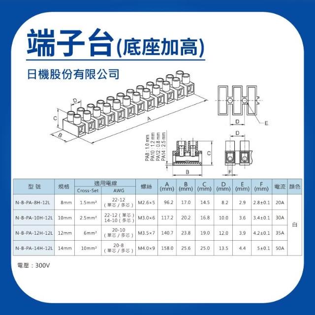 日機中繼端子台 固定接線端子 耐電壓300V (10個入) 接線座 加高型端子台 端子座