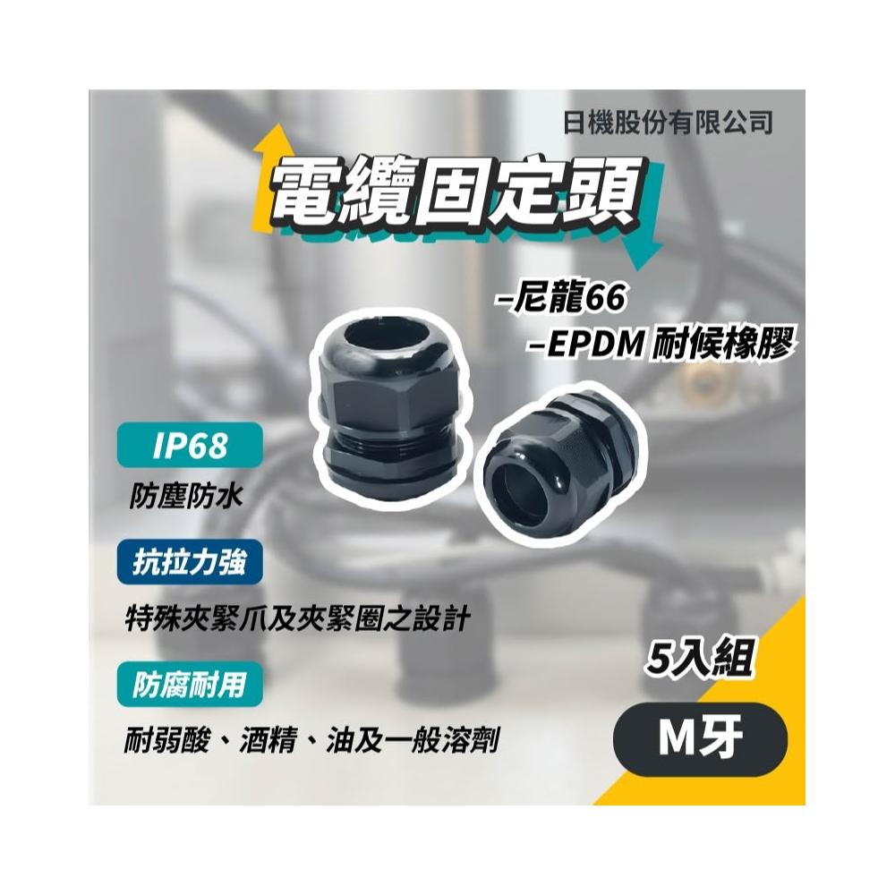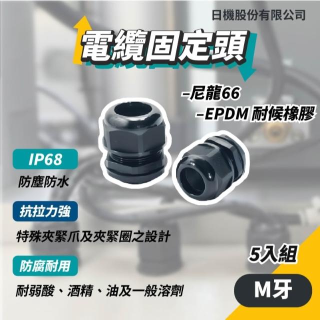 電纜固定頭 M牙 尼龍電纜固定頭 (5入/包) 多項安規認證 電纜範圍2-18mm