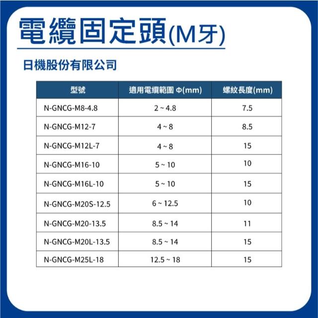電纜固定頭 M牙 尼龍電纜固定頭 (5入/包) 多項安規認證 電纜範圍2-18mm
