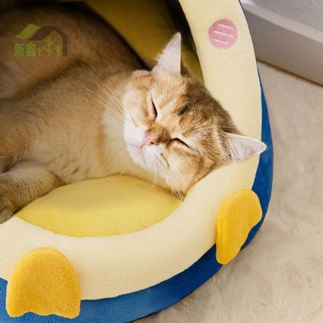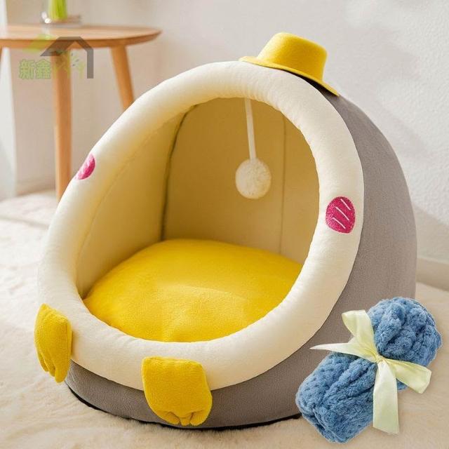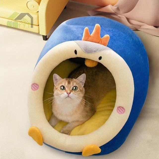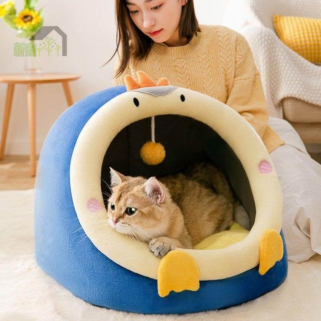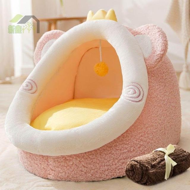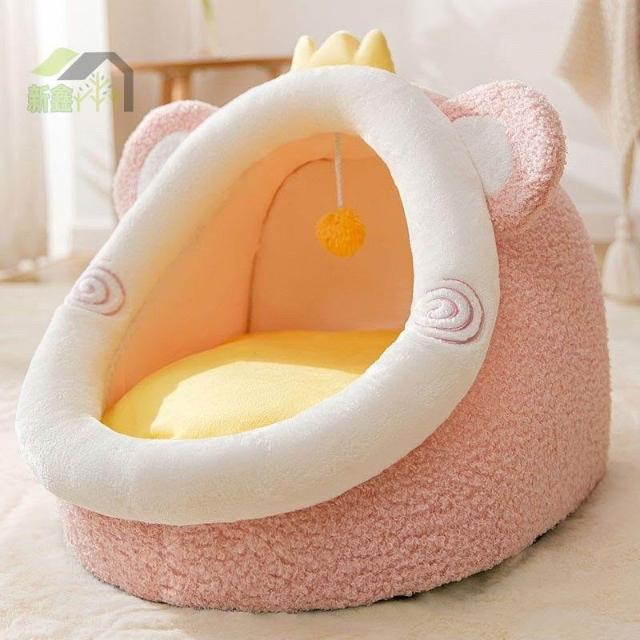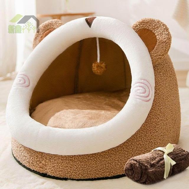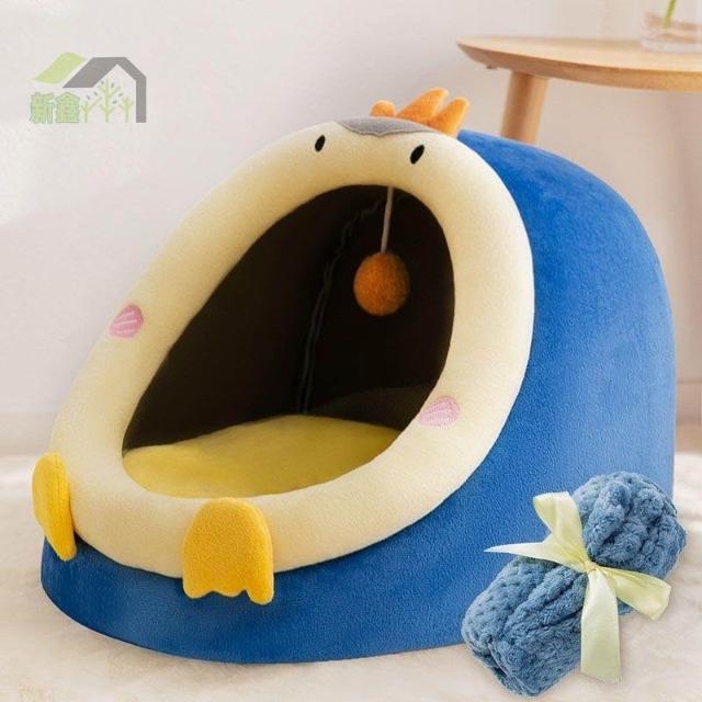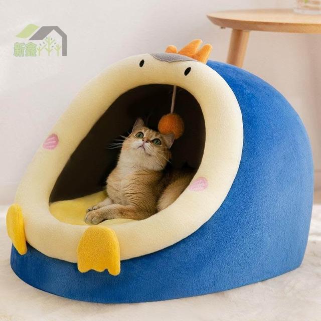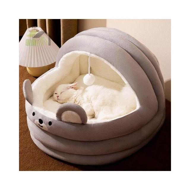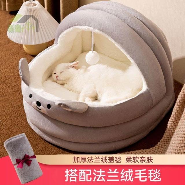 貓咪窩 四季通用冬季保暖貓貓用品 半包圍式寵物屋子 寵物睡覺床 寵物狗窩 深度睡眠貓屋 寵物暖屋 超柔綿絨貓窩 寵物窩墊