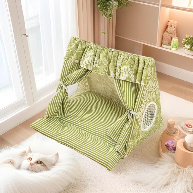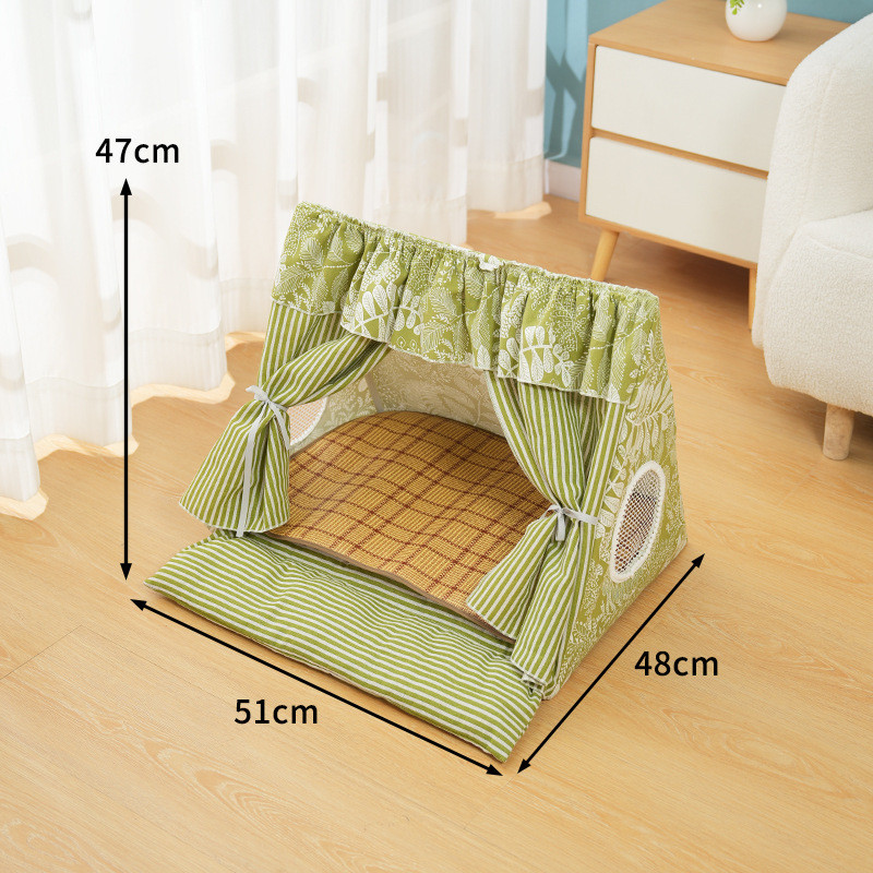 貓窩帳篷四季通用中小型可拆洗半封閉貓狗可愛網紅夏秋季寵物用品涼感透氣深度睡眠柔軟親膚高顏值居家裝飾防滑底面窩墊高品質優選