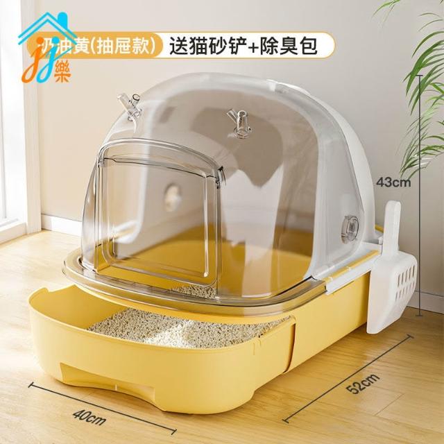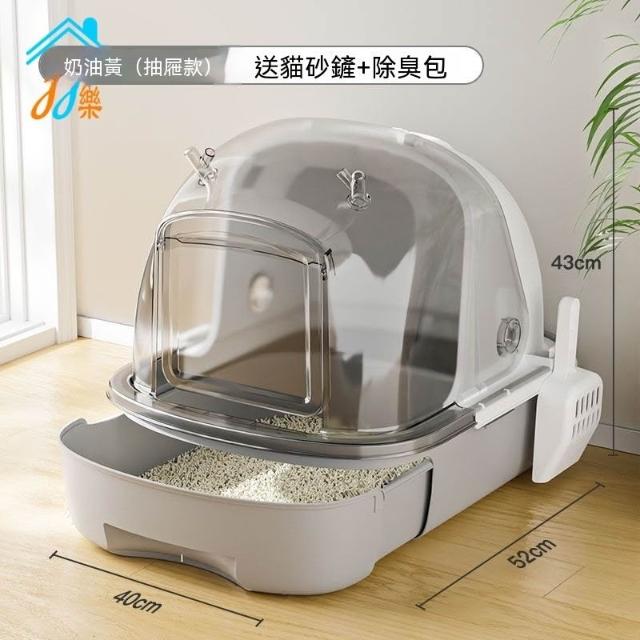 貓砂盒 全封閉翻蓋透明貓砂盆 抽拉抽屜式貓廁所 除臭寵物用品 超大廁所,貓用品,貓咪用品 貓盆 輕鬆鏟屎貓便盆