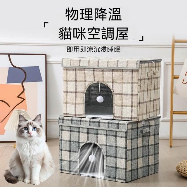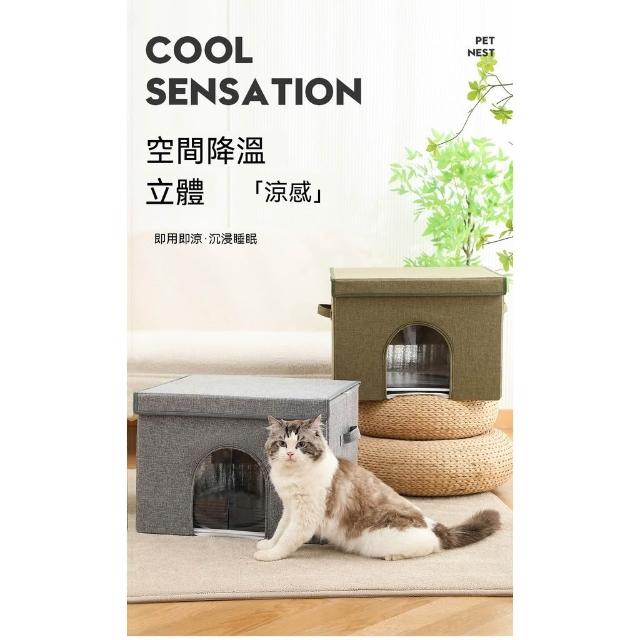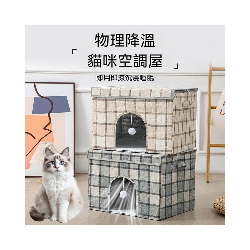 夏季新款冰涼貓窩便攜式可折疊貓咪空調屋自制冰袋降溫寵物房子物理降溫消暑神器高顏值大空間透氣舒爽涼感纖維室內戶外通用多功能