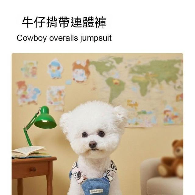 爆款寵物衣服卡通圖案口袋可調節背帶牛仔寵物背帶褲精緻車工耐穿耐洗帥氣可愛造型網紅同款多尺寸可選高品質潮流寵物牛仔裝穿搭