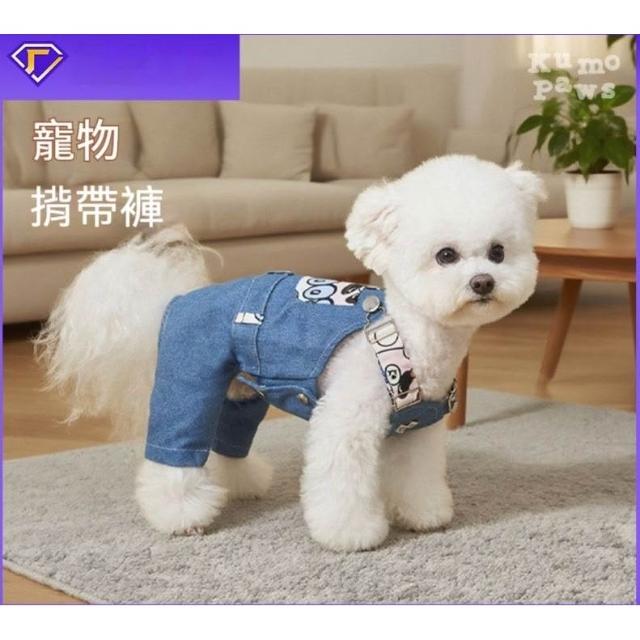 爆款寵物衣服卡通圖案口袋可調節背帶牛仔寵物背帶褲精緻車工耐穿耐洗帥氣可愛造型網紅同款多尺寸可選高品質潮流寵物牛仔裝穿搭