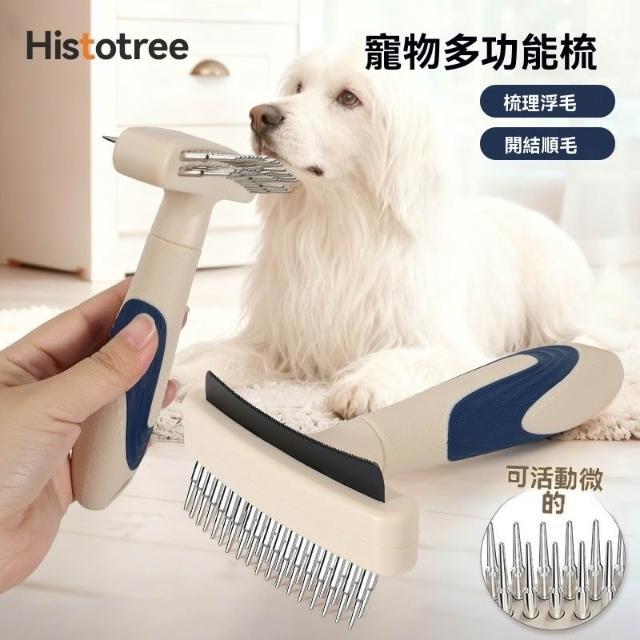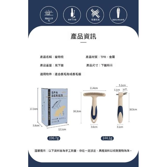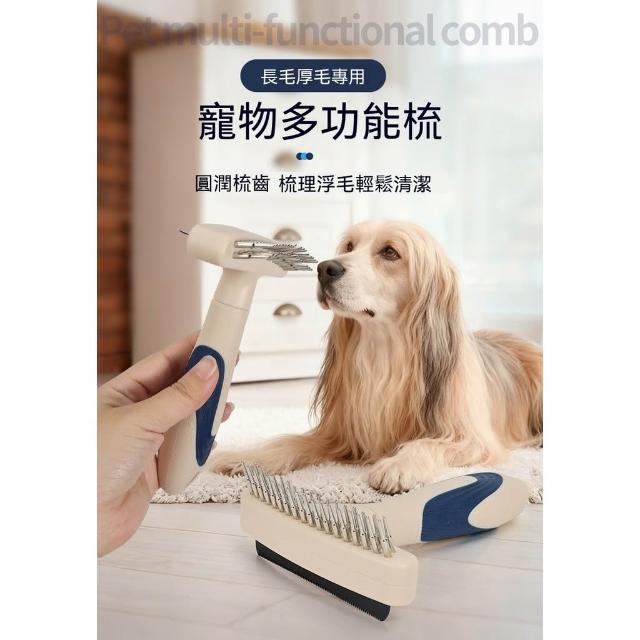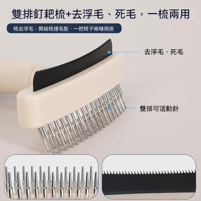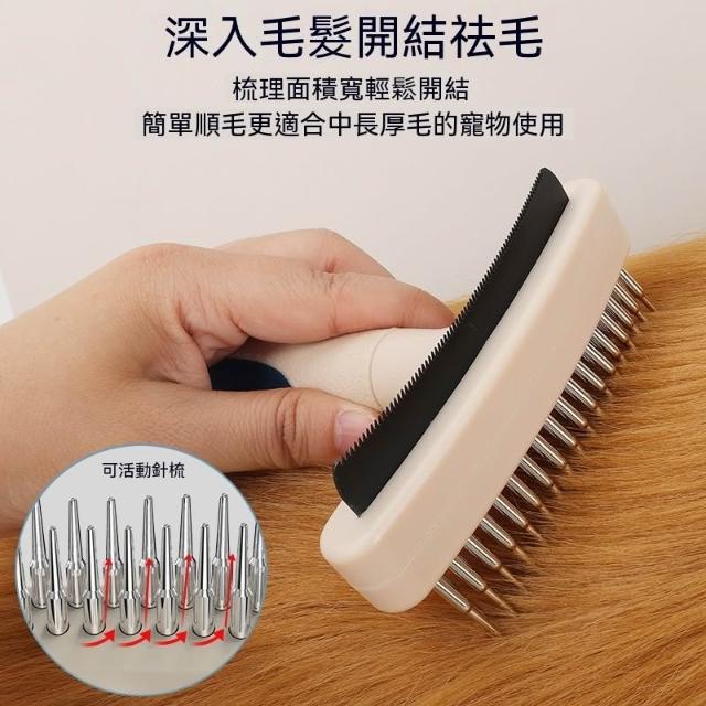寵物梳子狗狗祛毛梳貓咪開結梳美容釘耙排梳二合一雙面刀頭防滑握把自動除毛安全護膚款居家美容寵物換季除毛浮毛清理按摩順毛護理