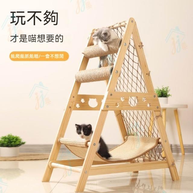 實木爬架 新款貓咪磨爪自嗨攀爬網 貓抓柱 小貓玩具 貓咪玩具 貓咪鞦韆 貓咪跳台 貓咪吊籃 貓貓玩具 貓掛床 貓家具