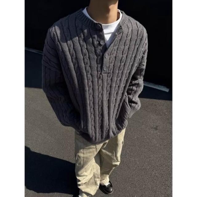 本命年紅色亨利領毛衣男士款秋冬爆款慵懶風鬆弛感麻花針織衫外套