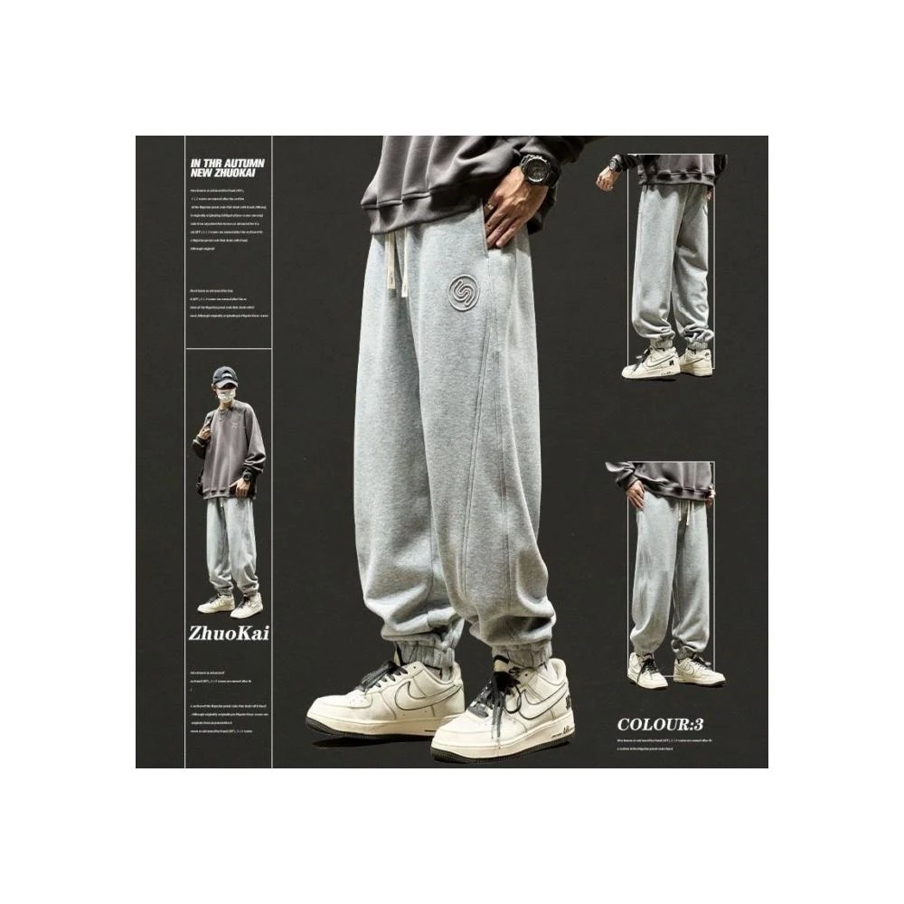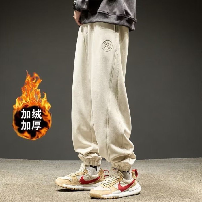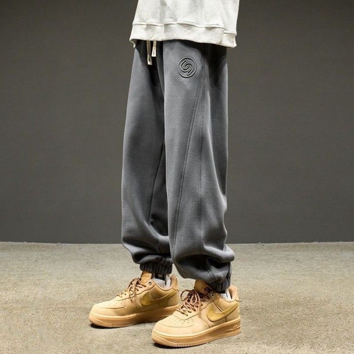 灰色衛褲潮牌春季美式秋冬休閒運動純色褲子加絨加厚重磅男生長褲