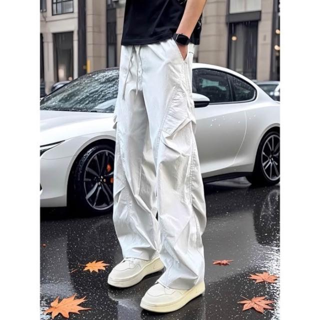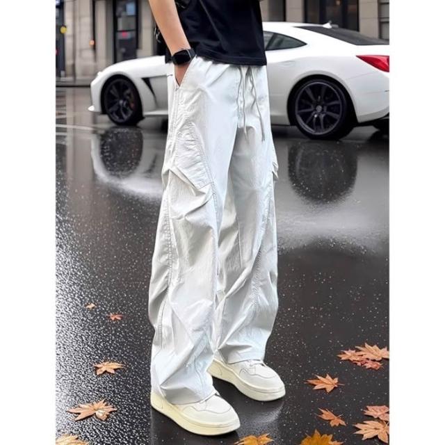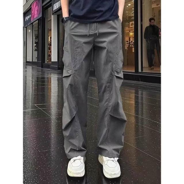 卡其色美式彎刀速幹褲男夏季薄款傘兵工裝褲寬鬆直筒闊腿休閒褲32