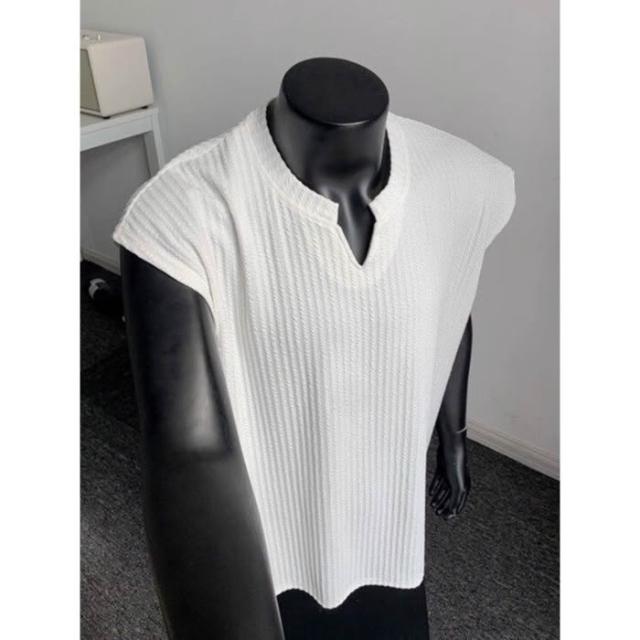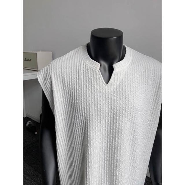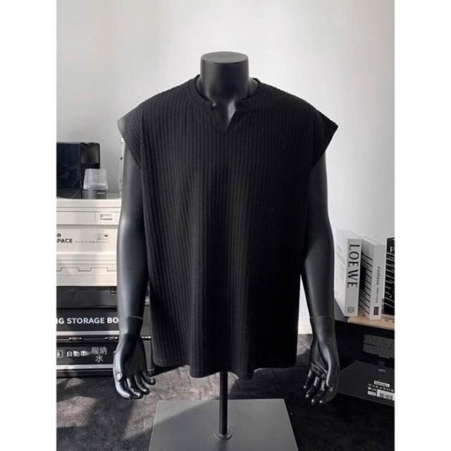 條紋坎肩背心男款2025夏季美式無袖v領t恤肌理感純色健身運動汗衫