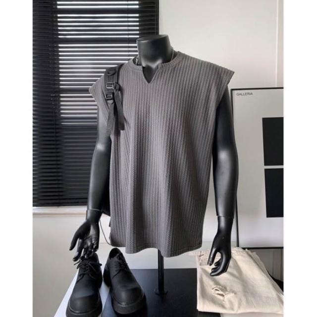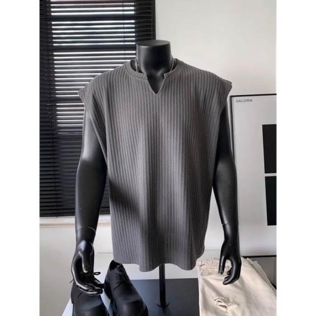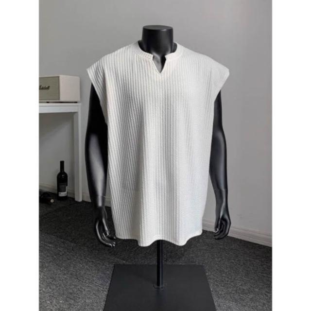條紋坎肩背心男款2025夏季美式無袖v領t恤肌理感純色健身運動汗衫