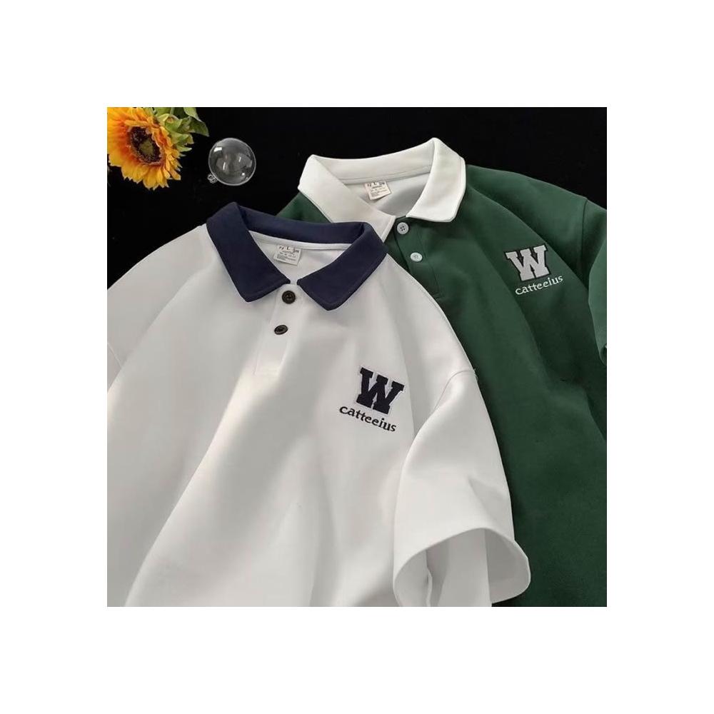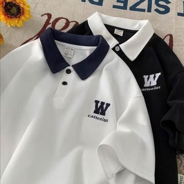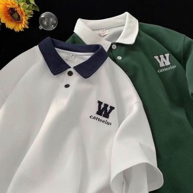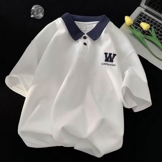短袖polo衫男夏季學院風翻領t恤美式復古半截袖體恤潮牌寬鬆上衣