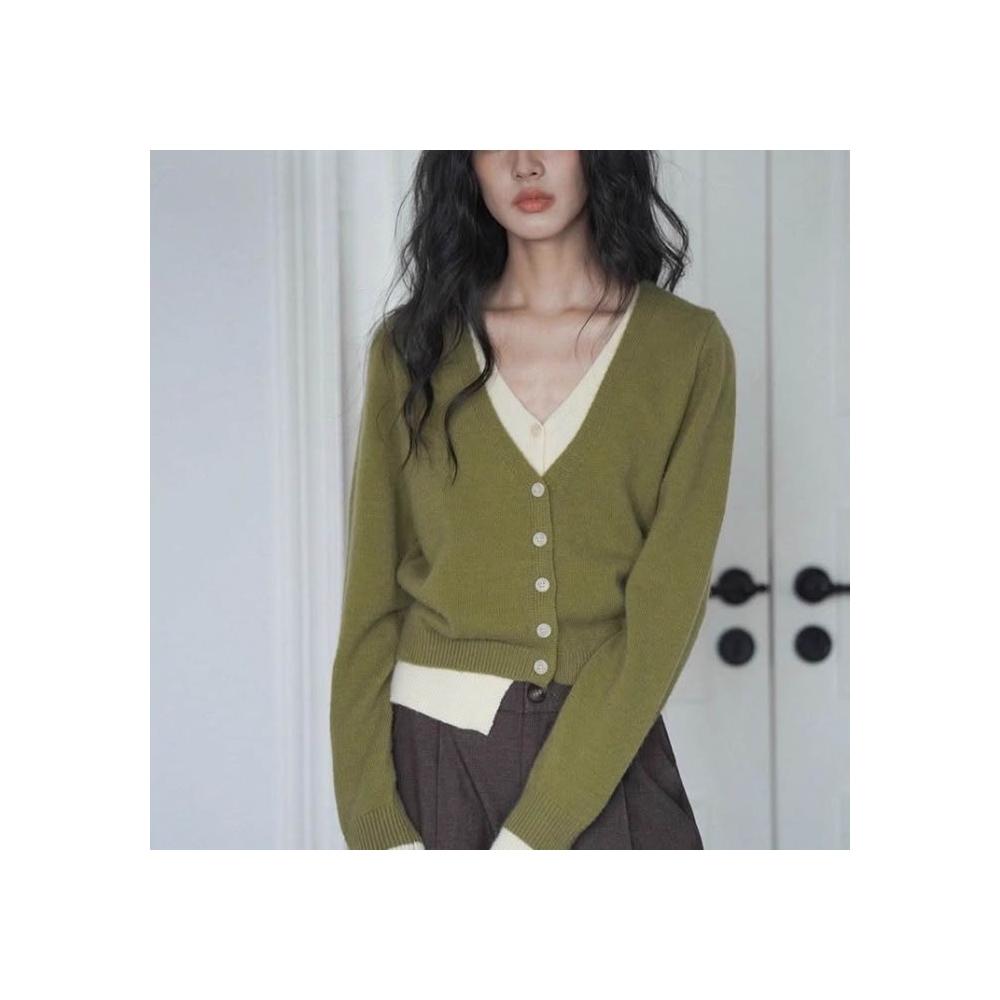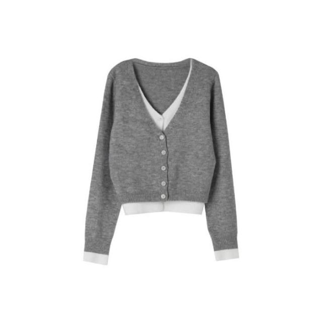 短款外套設計假長袖兩件針織衫毛衣2025時尚新款寬鬆針織開衫上衣