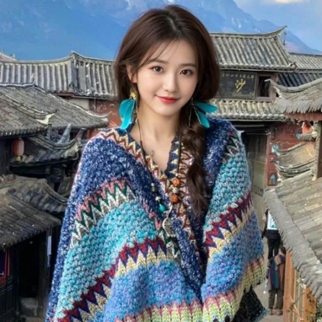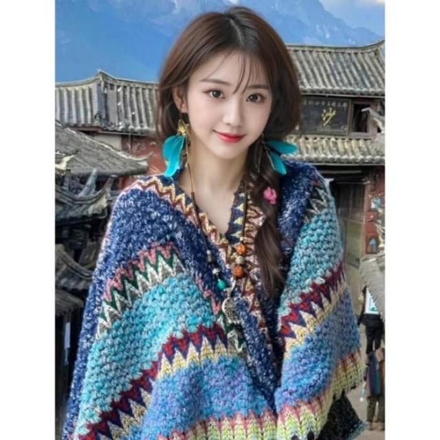 披肩女2025新款外搭民族風雲南針織復古披風斗篷外套時尚洋氣