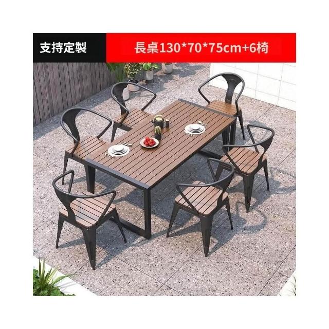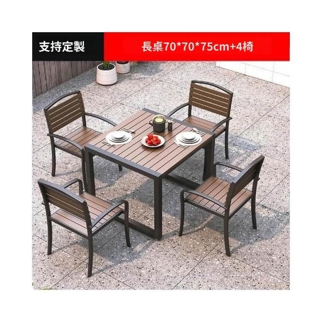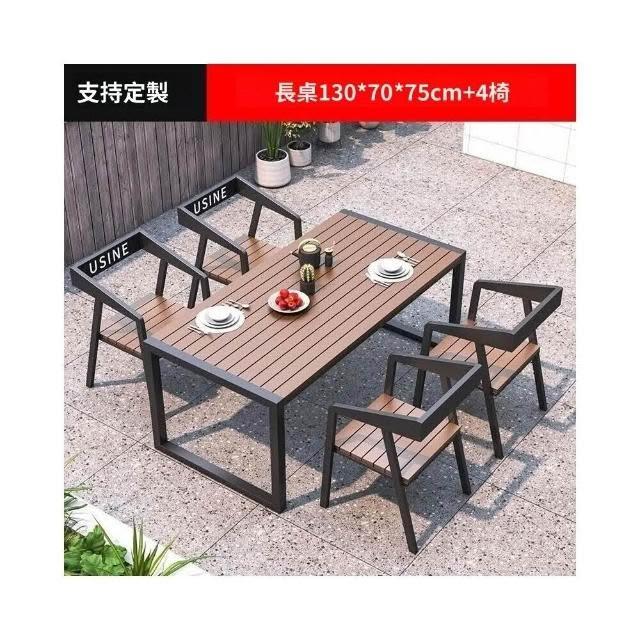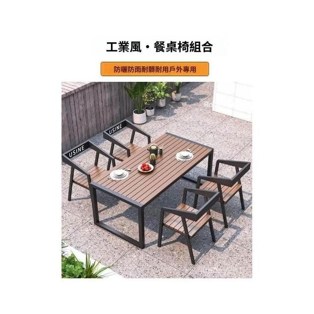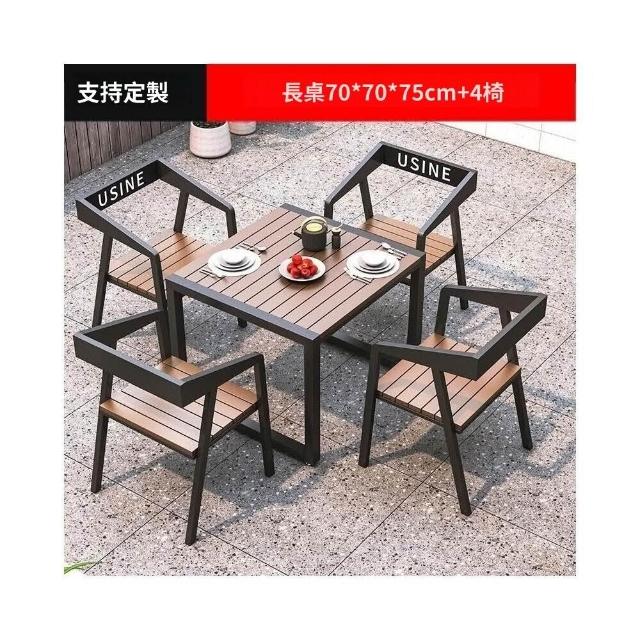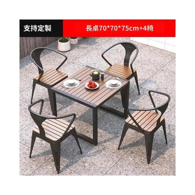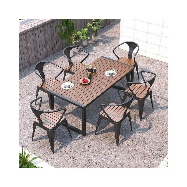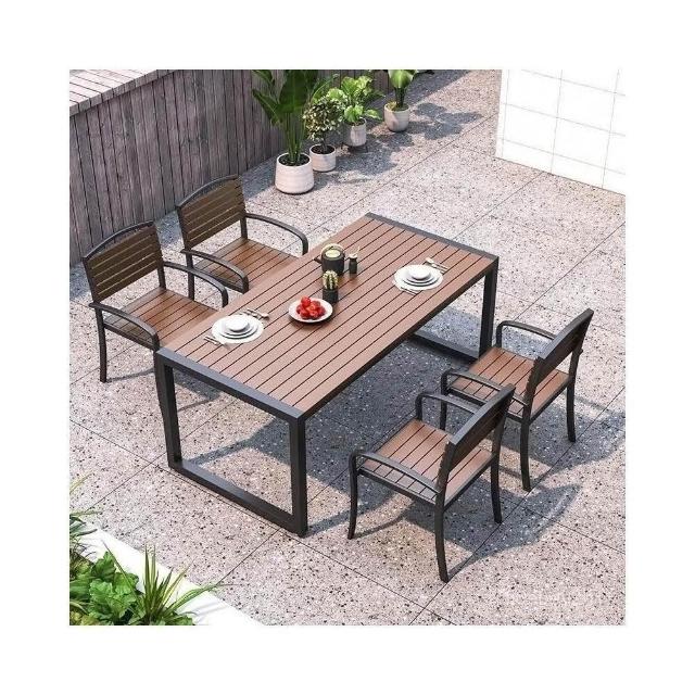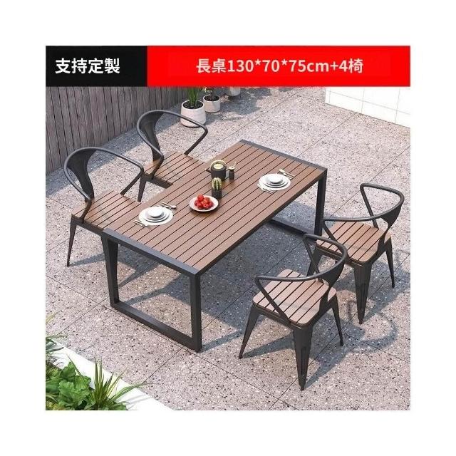 熱銷/特價 戶外庭院桌椅室外防水防曬餐桌公園休閒陽臺鐵藝塑木燒烤桌椅組閤 戶外桌椅 餐桌椅 露天桌椅 休閒桌椅 庭院桌椅