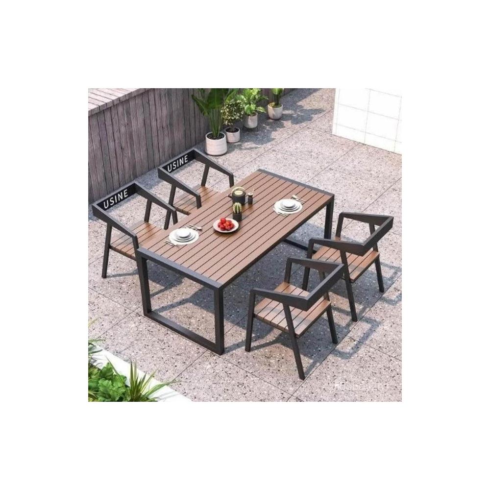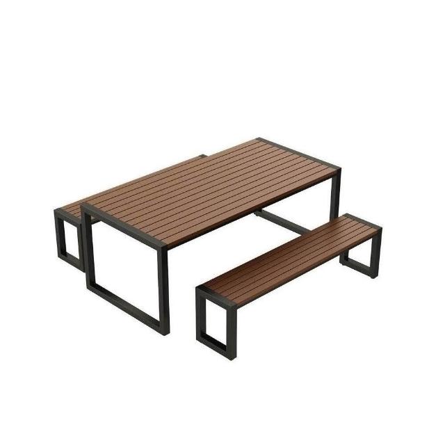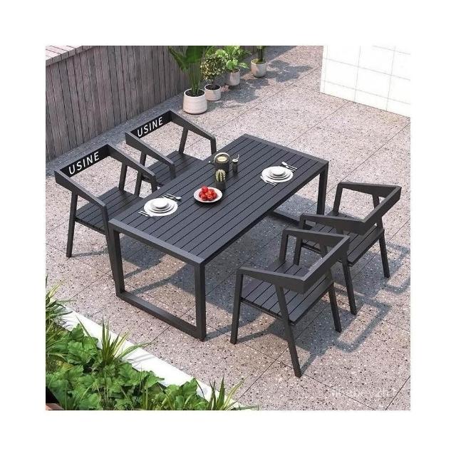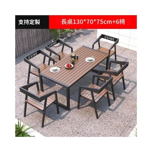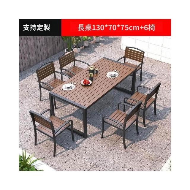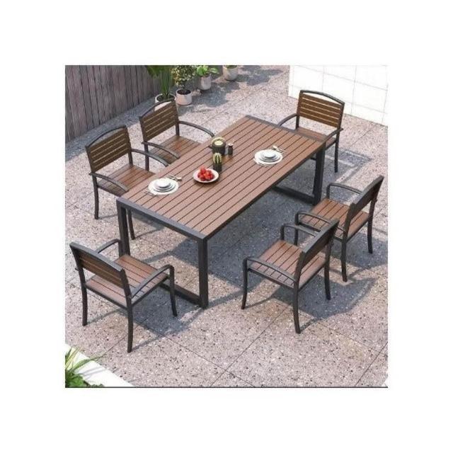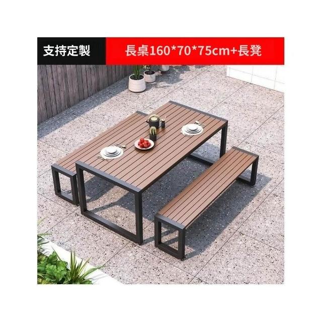 熱銷/特價 戶外庭院桌椅室外防水防曬餐桌公園休閒陽臺鐵藝塑木燒烤桌椅組閤 戶外桌椅 餐桌椅 露天桌椅 休閒桌椅 庭院桌椅