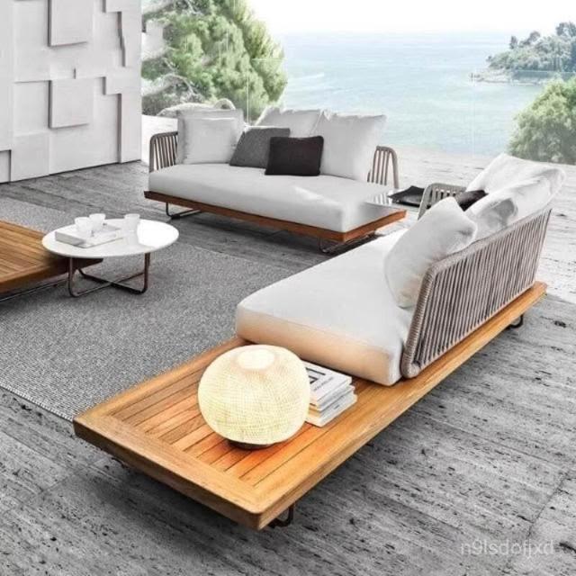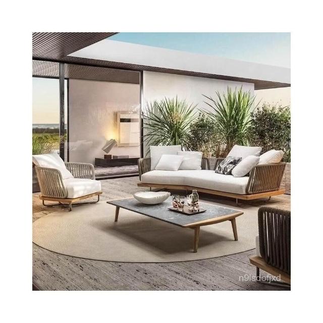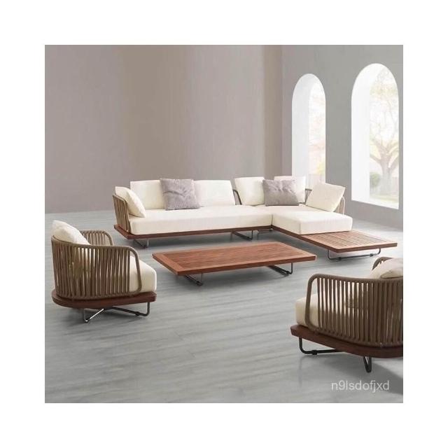 北歐戶外沙髮圓形椅茶幾藤編露天組閤陽光房室外庭院花園實木傢俱 藤編沙發 戶外沙發 沙發組閤 三人沙發 雙人沙發 休閒沙發