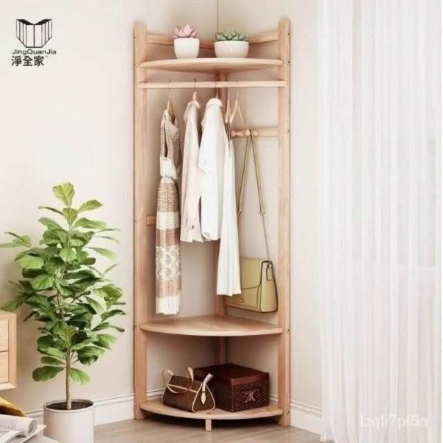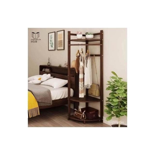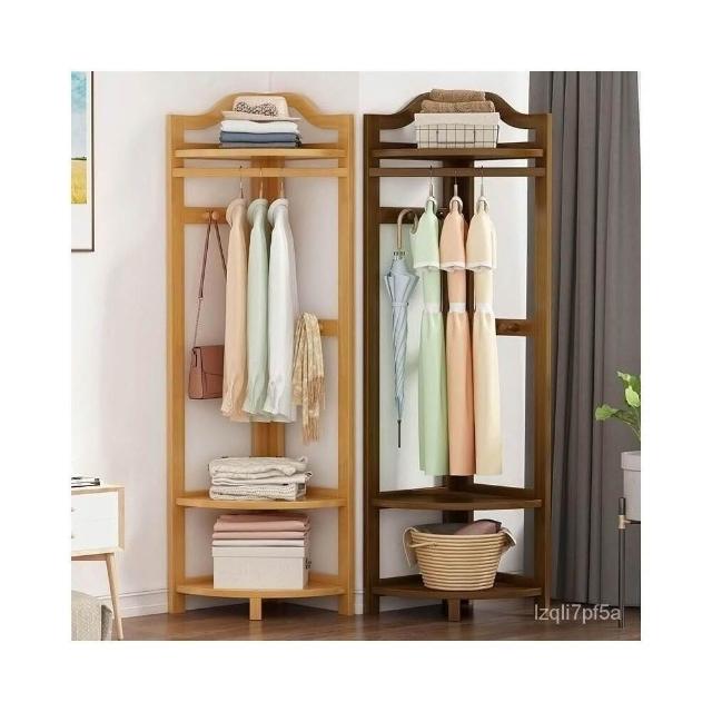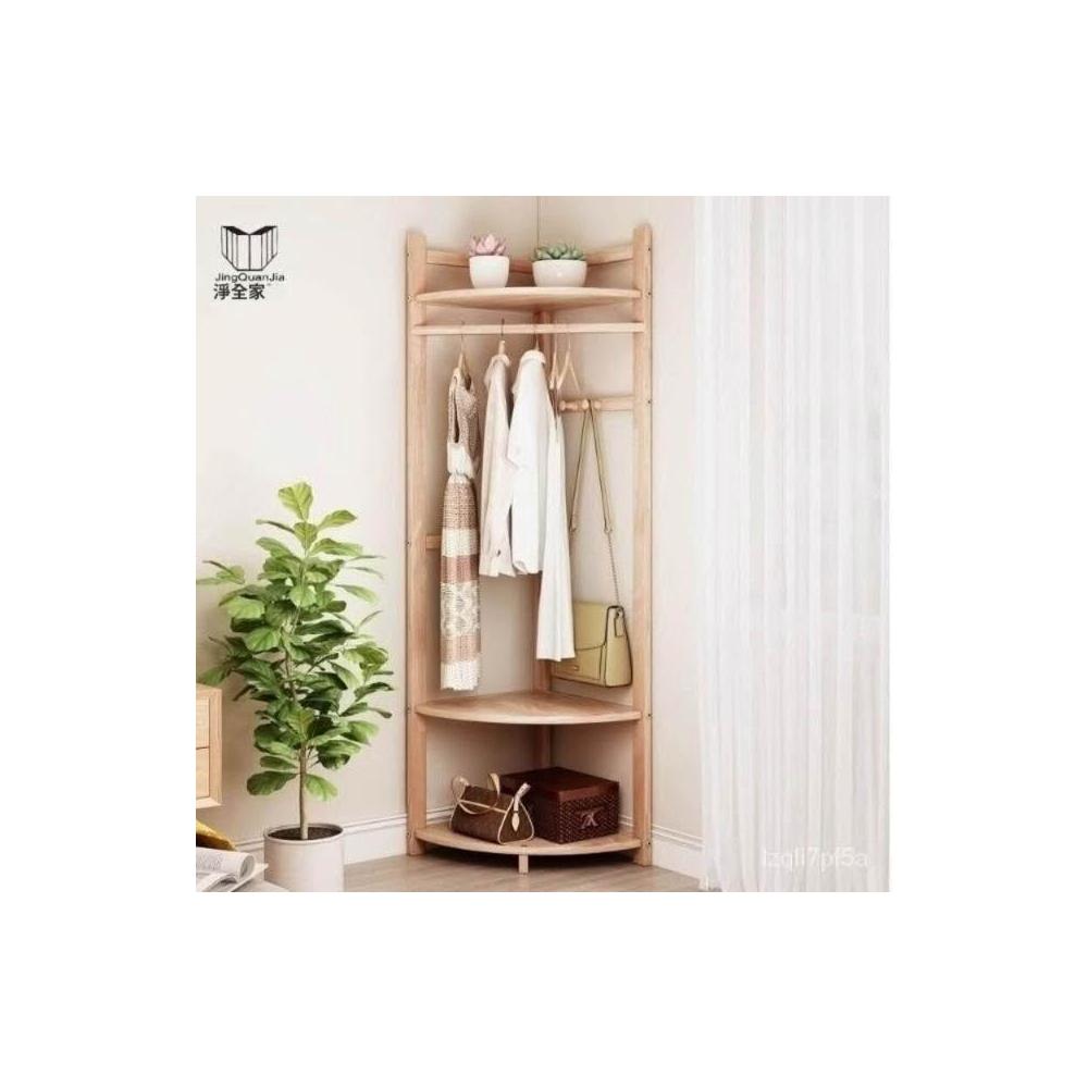 轉角衣帽架實木 三角拐角墻角多功能角落臥室落地掛衣架 床邊簡易掛衣服架子 北歐風木質衣架 置物衣架