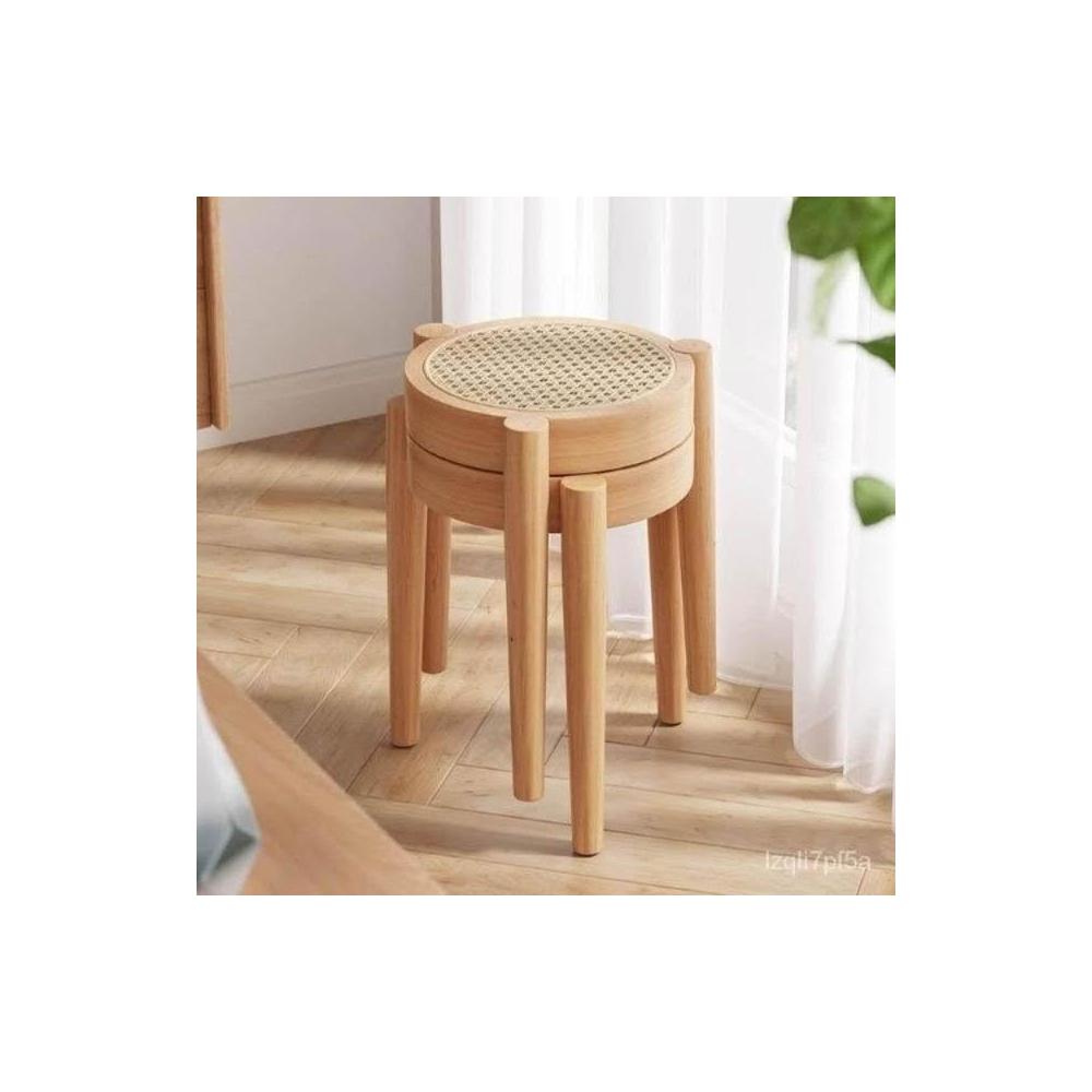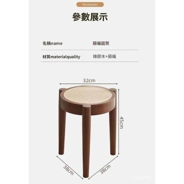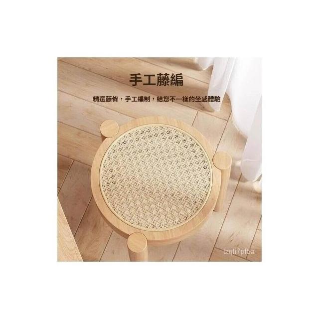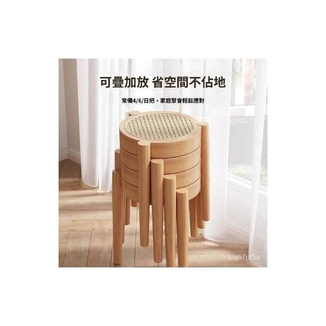 💥實木椅子 餐椅傢用 藤編餐桌椅凳子意式 中古書桌靠背椅 可疊放圓凳 小圓凳