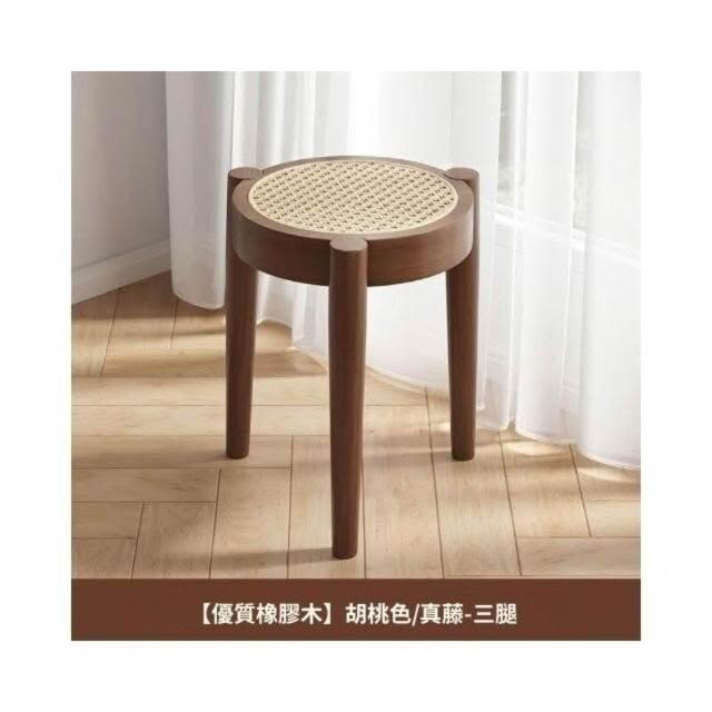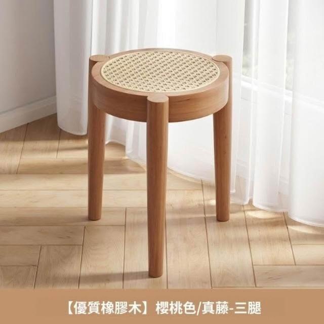 💥實木椅子 餐椅傢用 藤編餐桌椅凳子意式 中古書桌靠背椅 可疊放圓凳 小圓凳