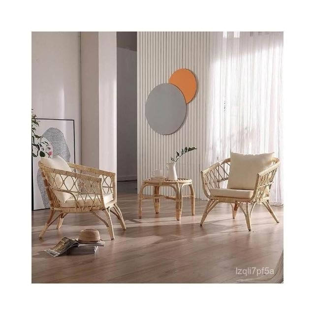 現代簡約 三件套 北歐真藤 民宿陽臺 休閑椅家用籐椅成人椅藤編椅日式懶人沙發室內房間陽臺
