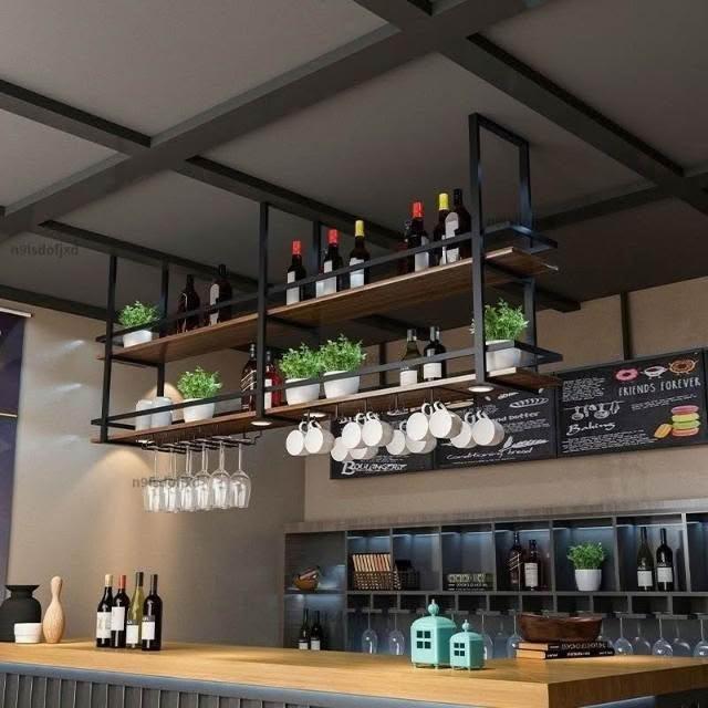工業風實木吊架 置物架 吧檯酒吧廚房懸掛墻上壁掛收納架酒杯酒架 鐵藝置物架 酒杯架 展示架