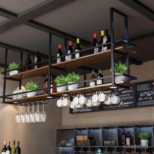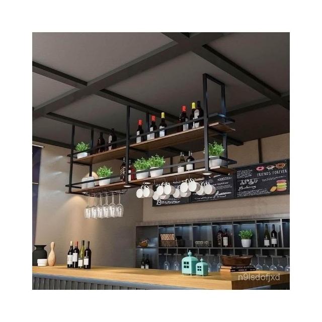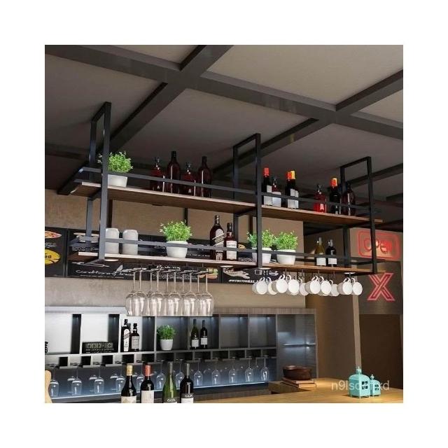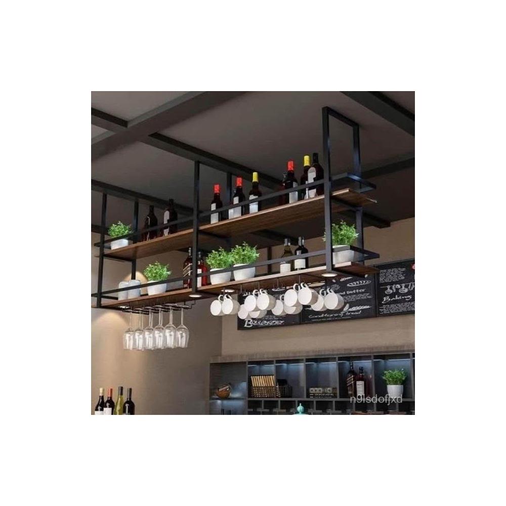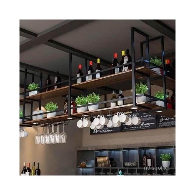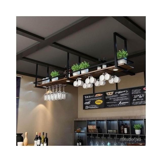 工業風實木吊架 置物架 吧檯酒吧廚房懸掛墻上壁掛收納架酒杯酒架 鐵藝置物架 酒杯架 展示架