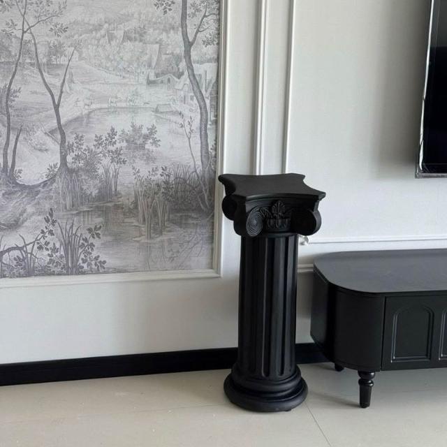 歐式展示擺件 純黑色羅馬柱 裝飾擺件 庭院婚慶展示檯布置裝飾道具 戶外花盆 底座