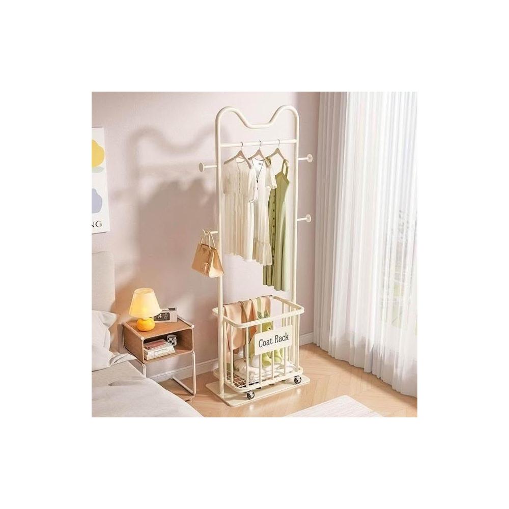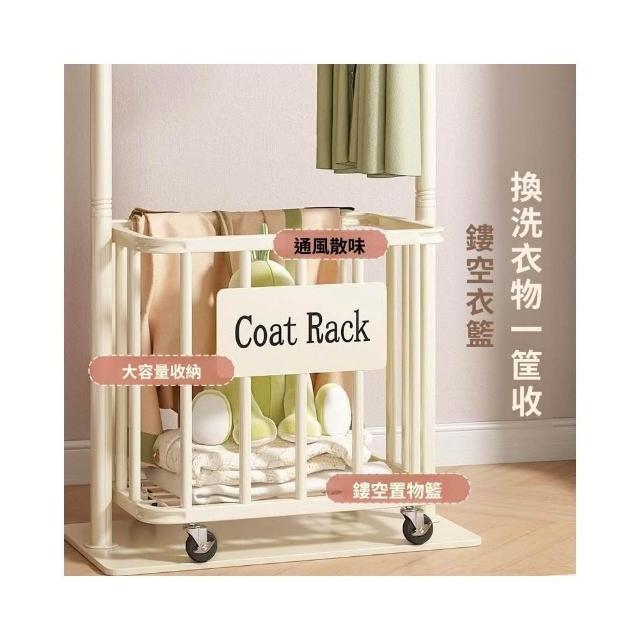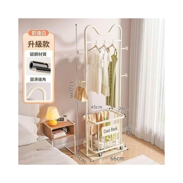 貓耳落地衣架 臥室掛衣架 家用加粗 帶輪簡易 衣帽架 收納髒衣簍 可移動髒衣簍 落地晾衣架 多功能置物架