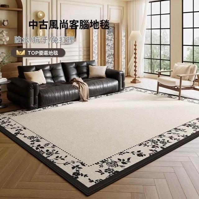 中古風法式 復古地毯 客廳 新款免洗可擦 防水防汙 臥室牀地墊 大尺寸地毯 客廳地墊 臥室地毯