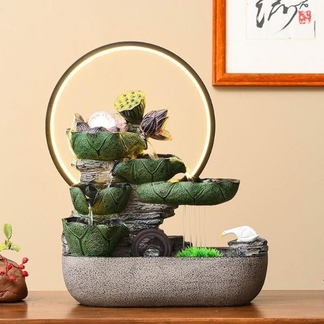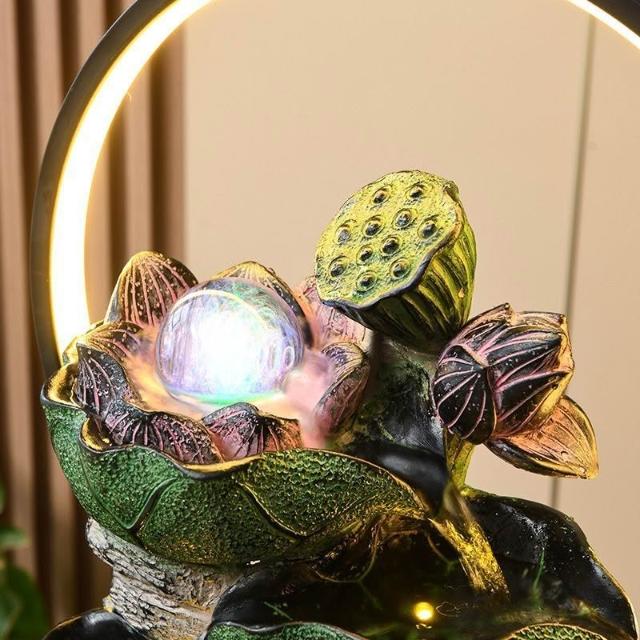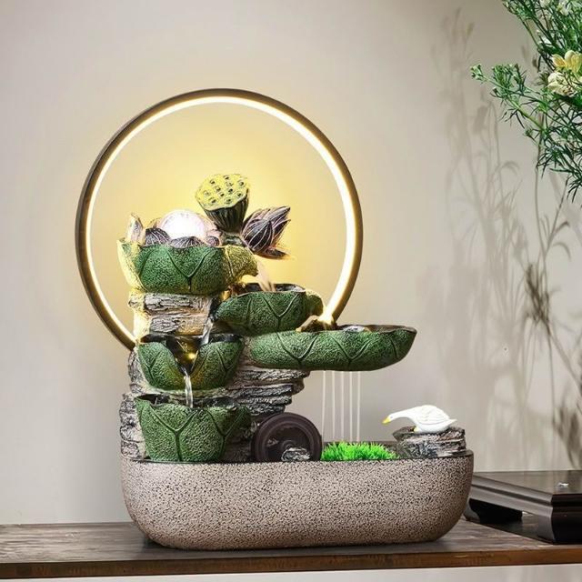 熱銷 荷葉生趣造景 流水循環水風水輪 小雨簾 轉運珠 桌面造景擺件客廳玄關 招財水流盆 水流擺件風水擺飾 開業 喬遷