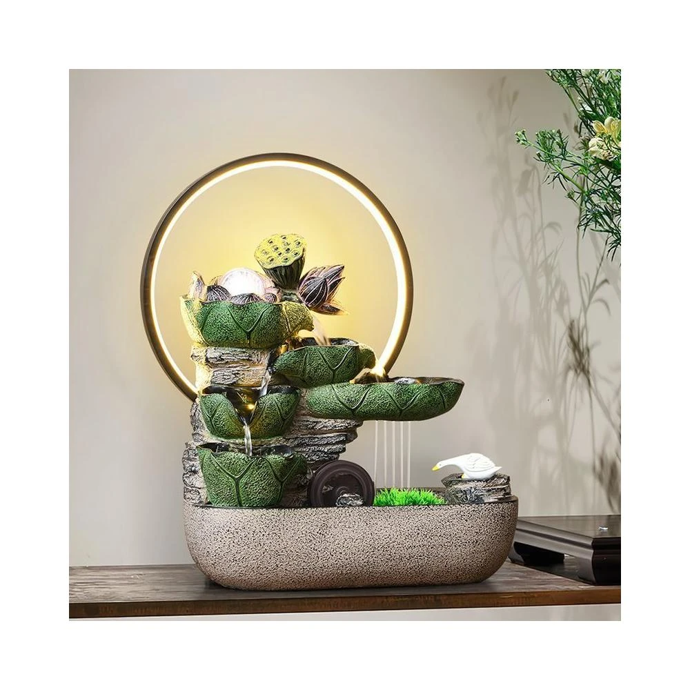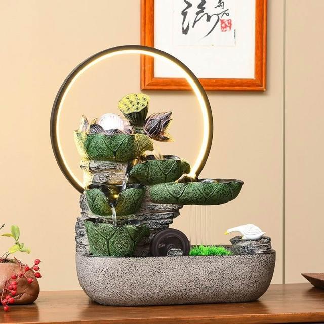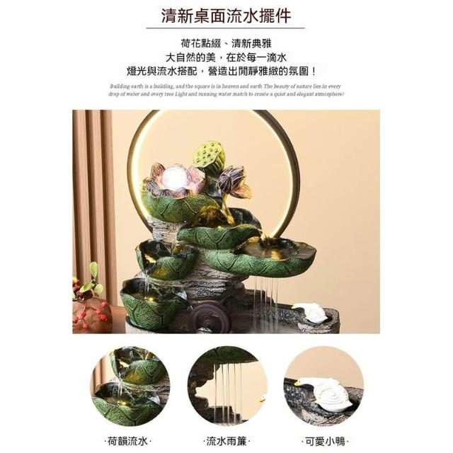 熱銷 荷葉生趣造景 流水循環水風水輪 小雨簾 轉運珠 桌面造景擺件客廳玄關 招財水流盆 水流擺件風水擺飾 開業 喬遷