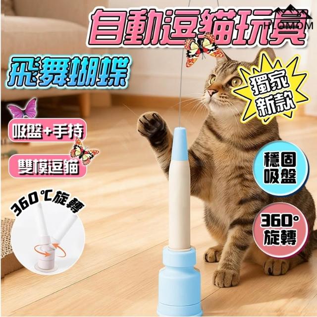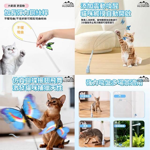 HLOMOM✨獨家新款 飛舞蝴蝶 自動逗貓棒 電動逗貓棒 自動逗貓器 貓 玩具 逗貓棒 貓咪玩具 吸盤+手持 雙模逗貓