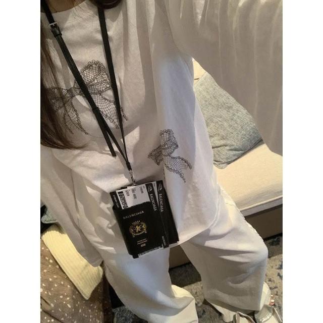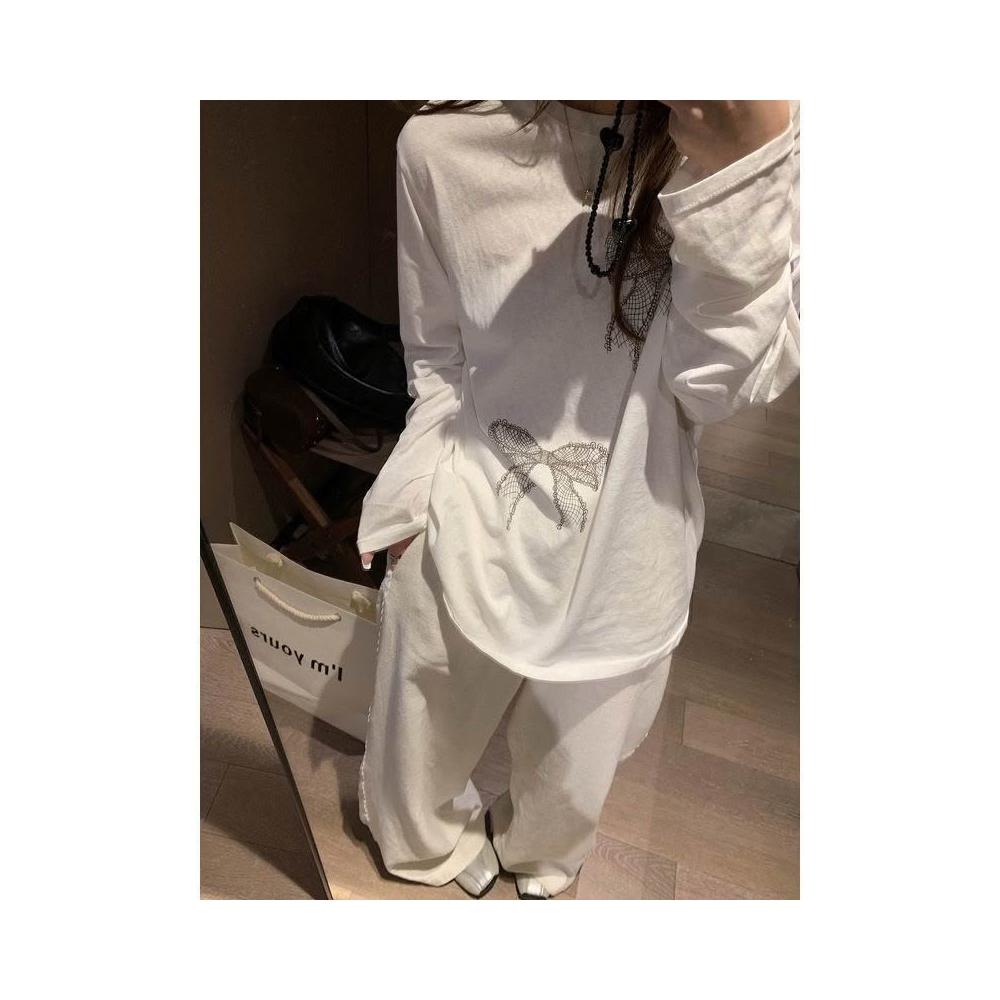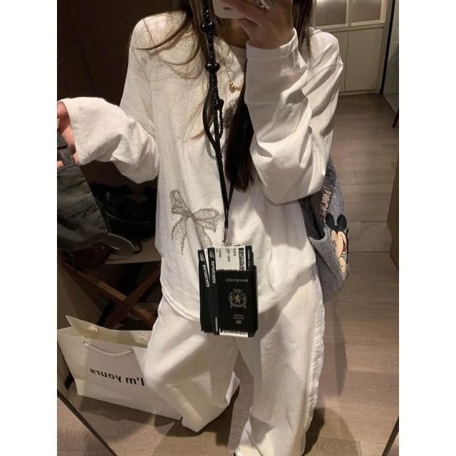 Quality生活 蝴蝶結印花長袖T恤女夏新款薄款休閑防曬寬松慵懶風顯瘦涼感上衣 ece