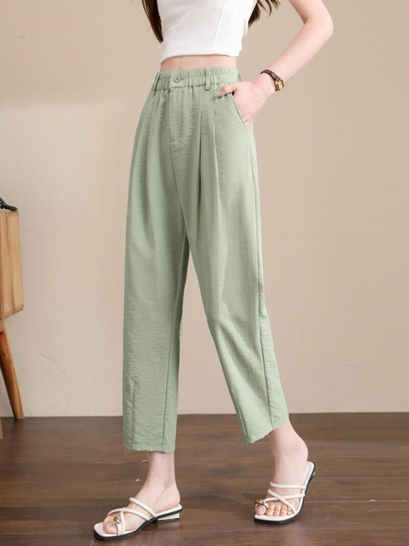 Quality生活 2026夏季新款亞麻九分褲冰絲棉麻哈倫褲高腰寬松休閑褲女薄款透氣 c4f