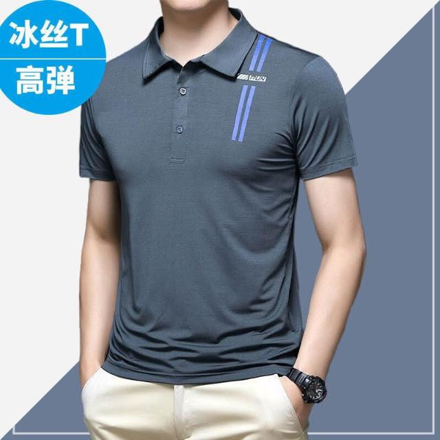 Quality生活 男士超薄款冰絲速幹彈力超薄款短袖t恤polo衫中年爸爸裝百搭夏季 91f
