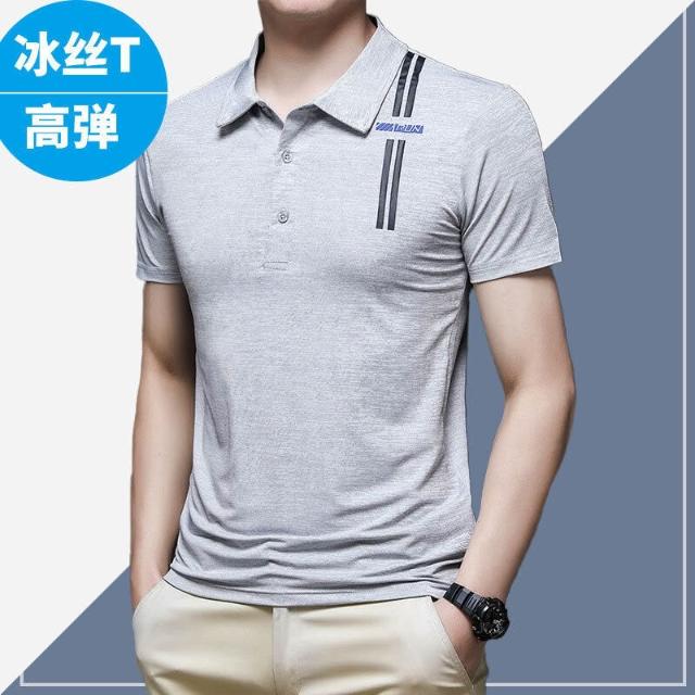 Quality生活 男士超薄款冰絲速幹彈力超薄款短袖t恤polo衫中年爸爸裝百搭夏季 91f