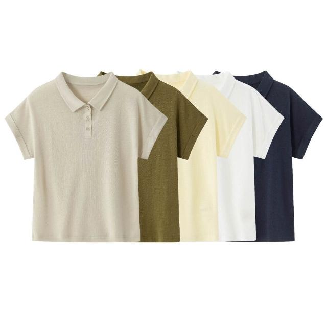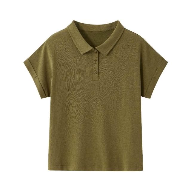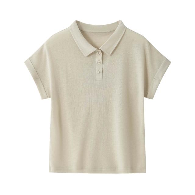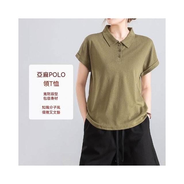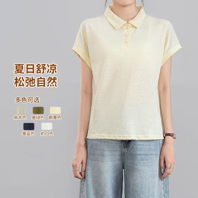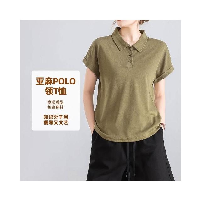 Quality生活 亞麻POLO領T恤女夏季文藝純色顯瘦翻領寬松休閑萊賽爾短袖上衣 9fe