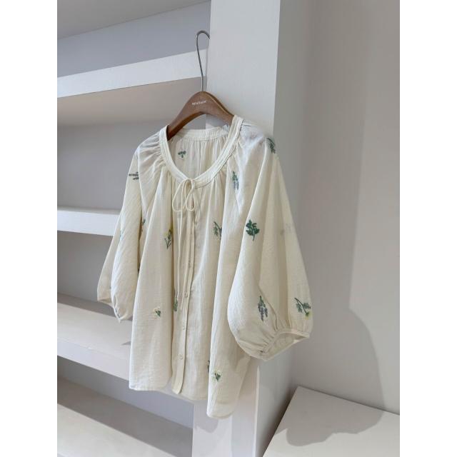 Quality生活 度假風~韓系圓領花朵刺繡小衫女!夏輕薄寬松泡泡袖襯衫甜美娃娃衫 c10
