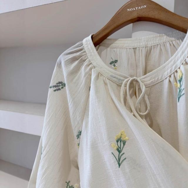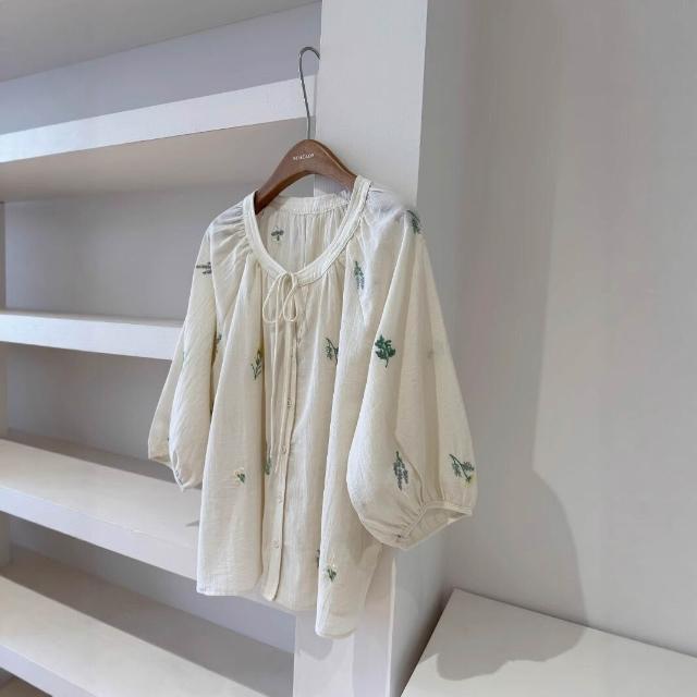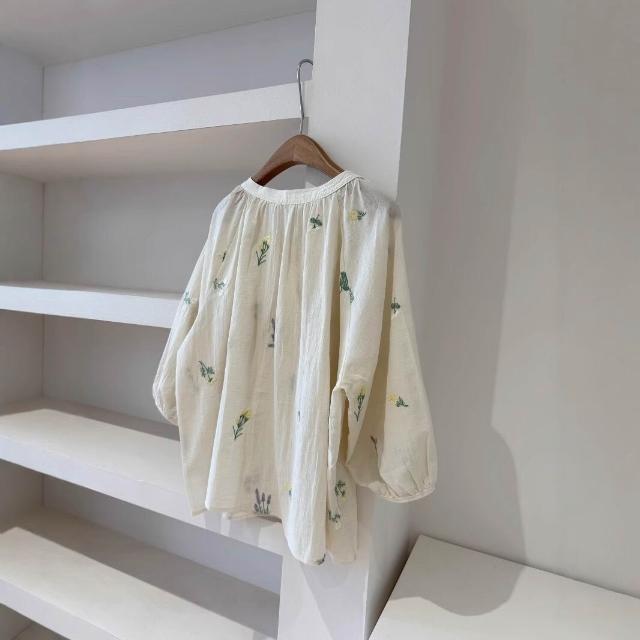 Quality生活 度假風~韓系圓領花朵刺繡小衫女!夏輕薄寬松泡泡袖襯衫甜美娃娃衫 c10