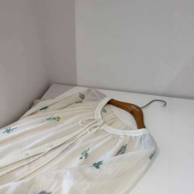 Quality生活 度假風~韓系圓領花朵刺繡小衫女!夏輕薄寬松泡泡袖襯衫甜美娃娃衫 c10
